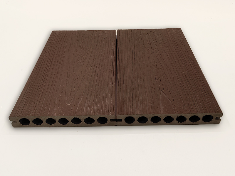 戶外地板-二代共擠圓孔壓花木紋木塑地板
